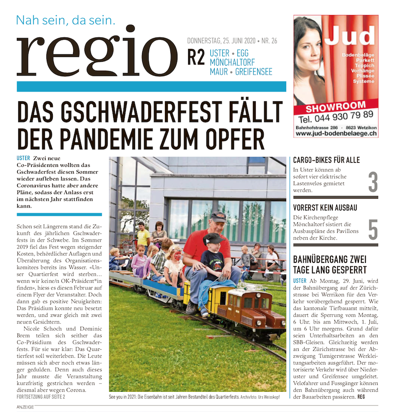 Donnerstag, 25. Juni 2020 | regio-Artikel | Ausgabe Uster